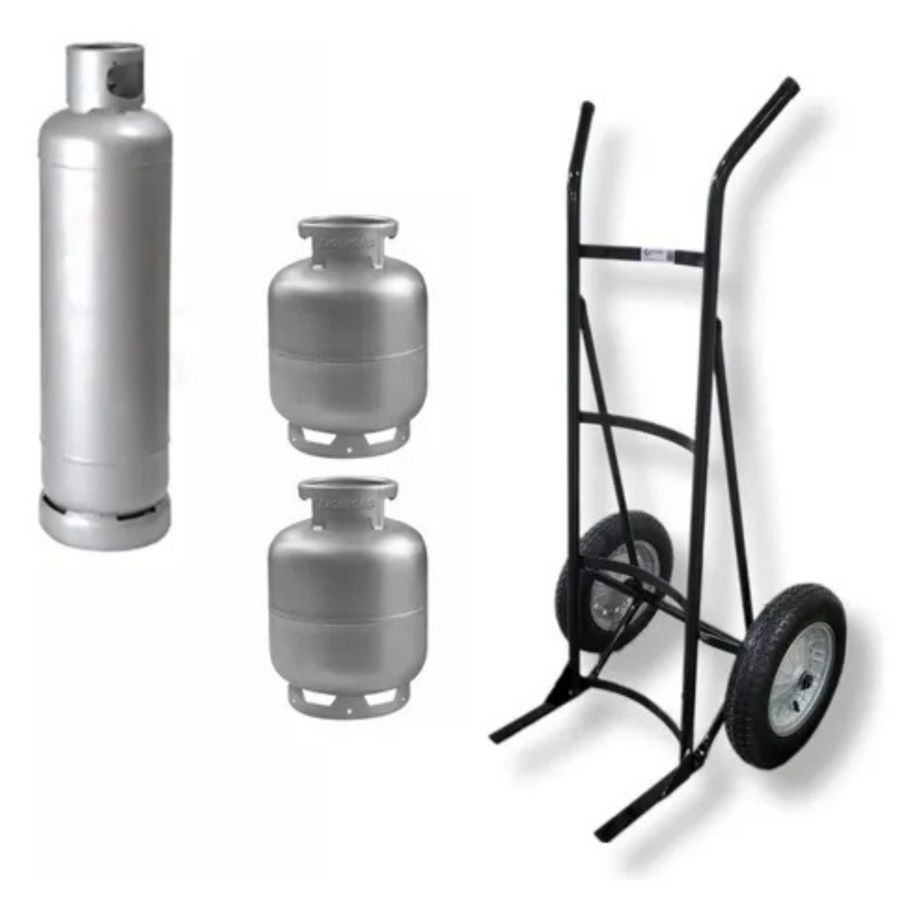 O Carrinho Para Botijão Gás Profissional Até 03 Cilindros - 02 Unidades Rolwes Metalúrgica tem um ótimo custo-benefício para você que precisa carregar cilindros de gás e galão de água.