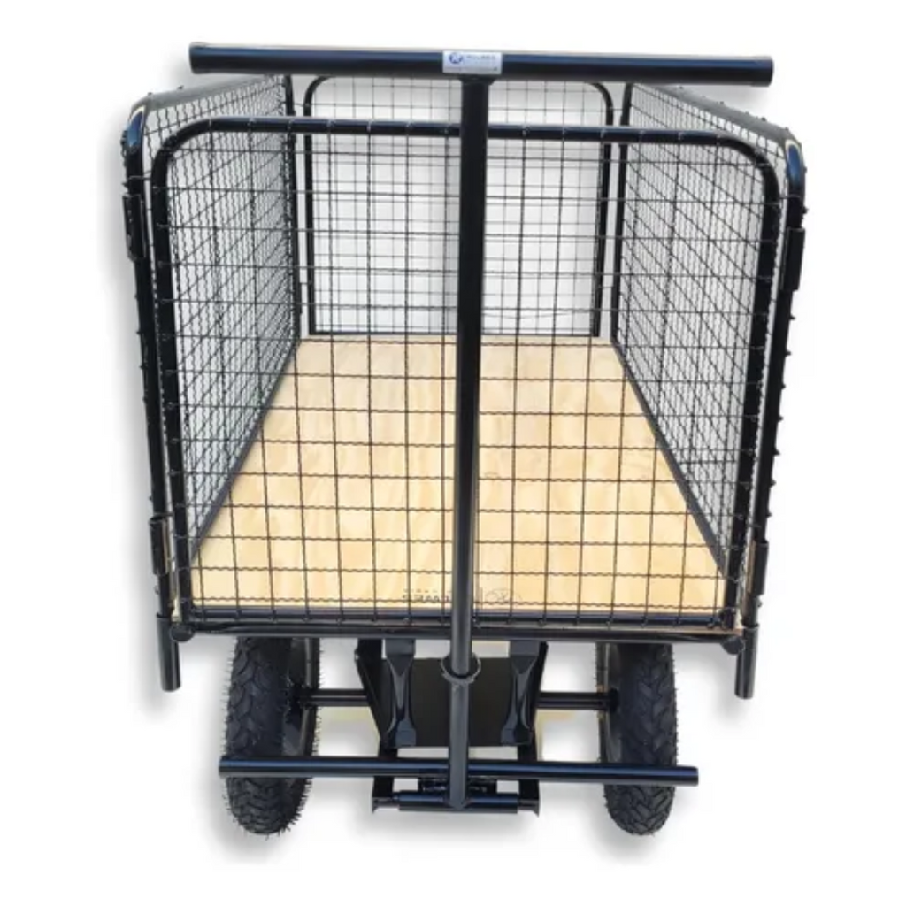 O processo de montagem conta apenas com a colocação das rodas e instalação dos acessórios do Carrinho Mercado Com Grade Para Volumes Rolwes Plataforma.